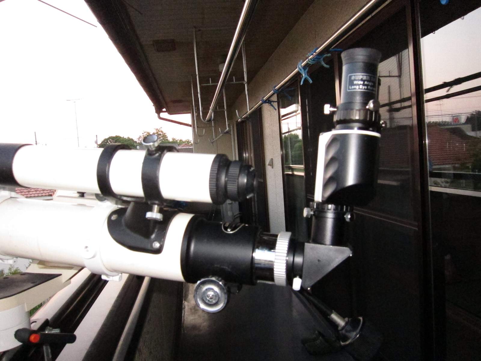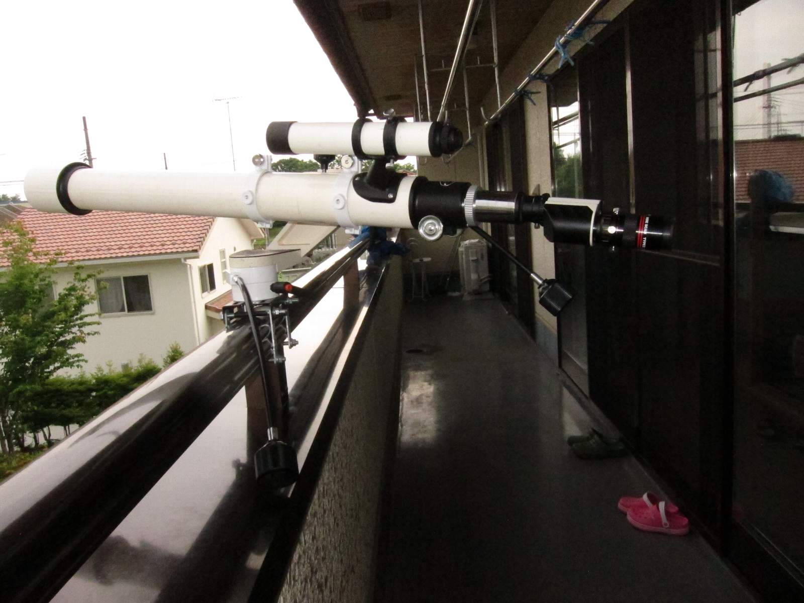 赤道儀は面倒なんで、ベランダポルタ(ポルタを手摺に固定)で。