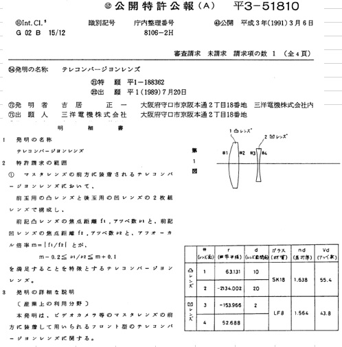 特許申請の中に2群2枚の構成のものがありますが、試しに探してみたいと思っています。