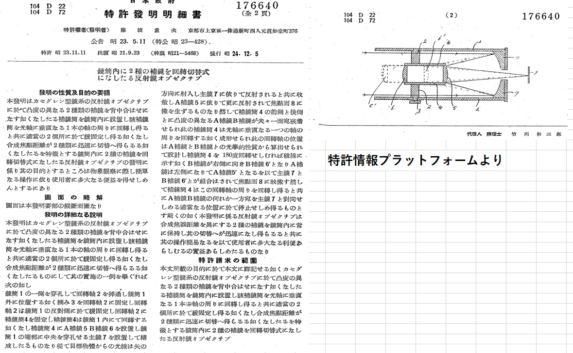 このほかに、同様な仕組みによるカセグレンとニュートンの切り替えの特許も取っています。