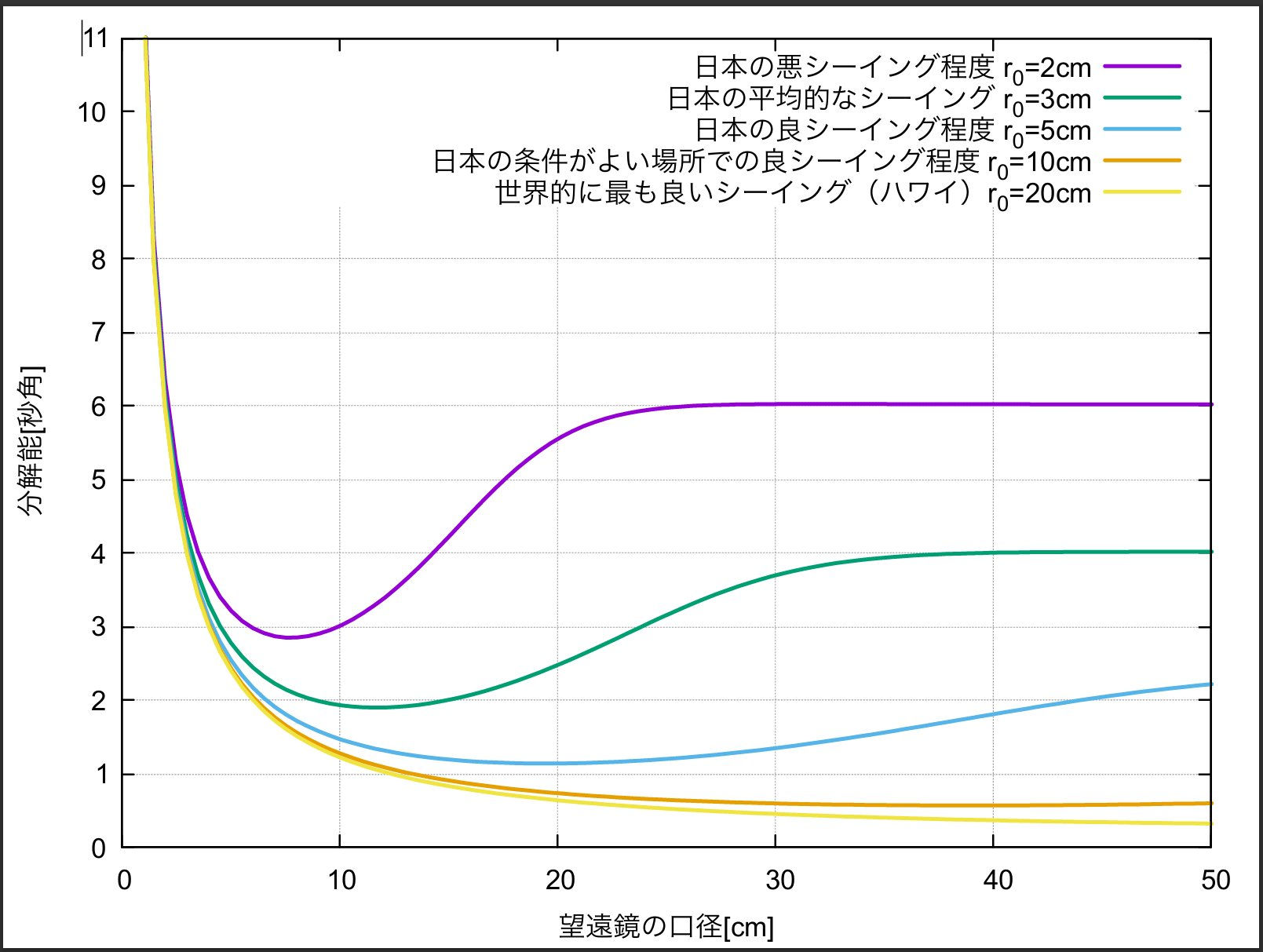 基本は「望遠鏡の分解能は口径に反比例して小さくなる」で良い訳ですが、そこに空気の揺らぎが