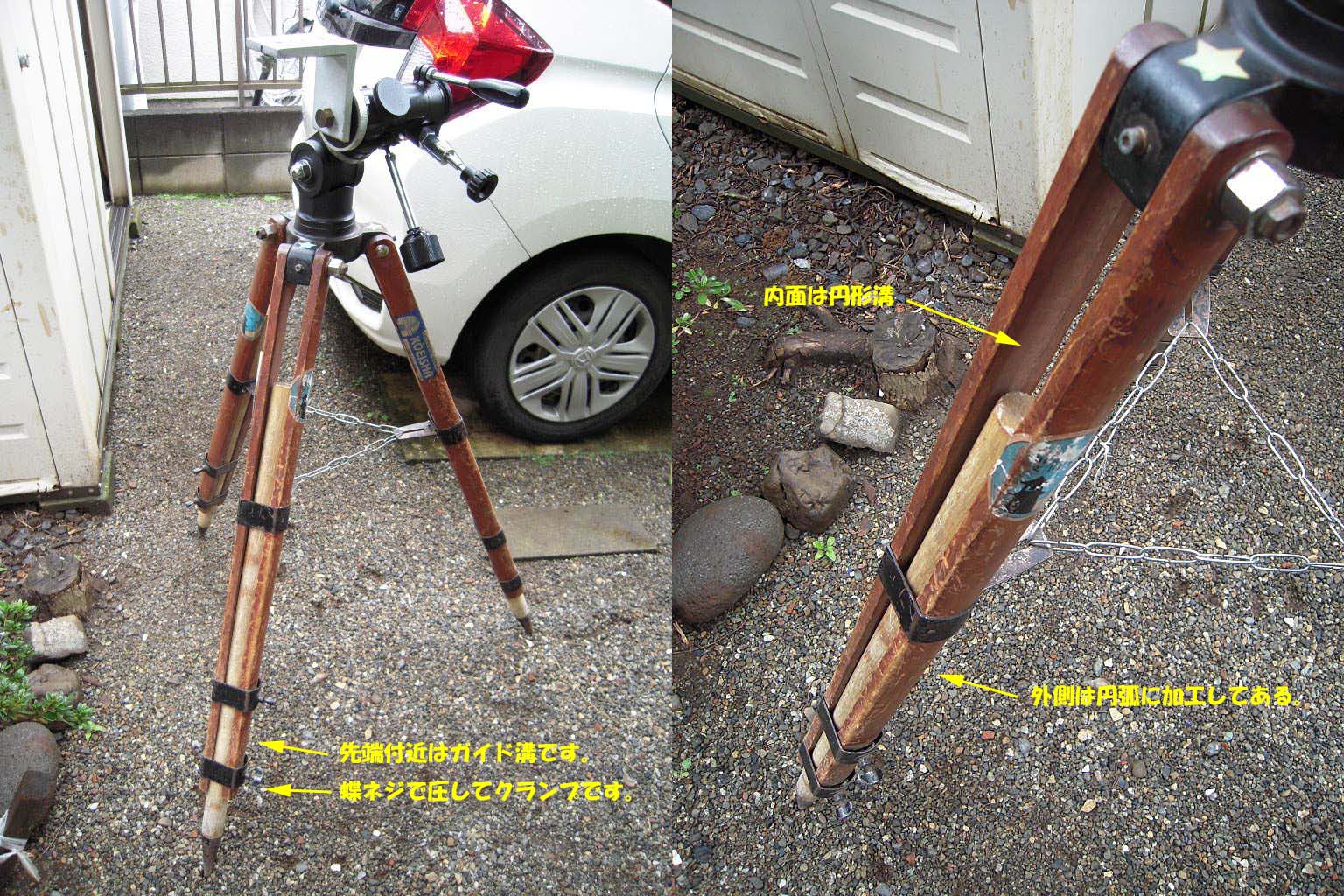 結合部に注目しています。高橋の木製三脚は断面も太く剛性も高そうですが