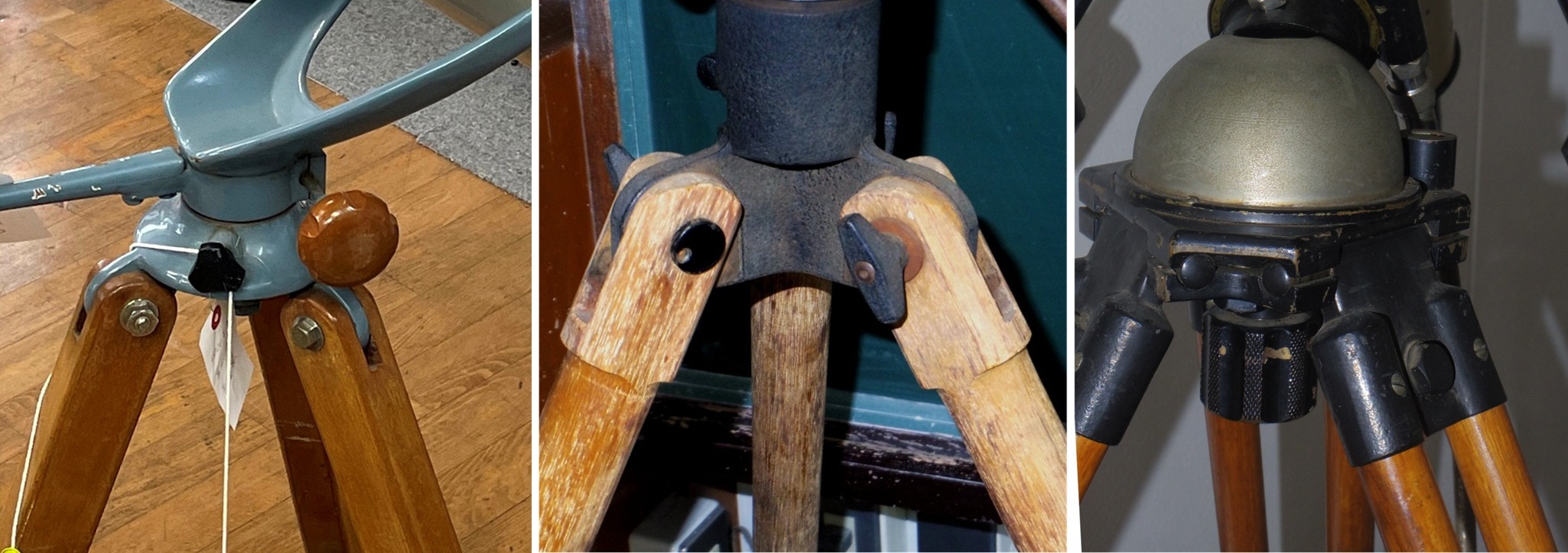 天体望遠鏡の三脚は、歴史としてみると三角板が出るまでは開き止め無し、あっても鎖で、足元が土以外のところでは使いにくいものでした。測量用がベースだったと思います。