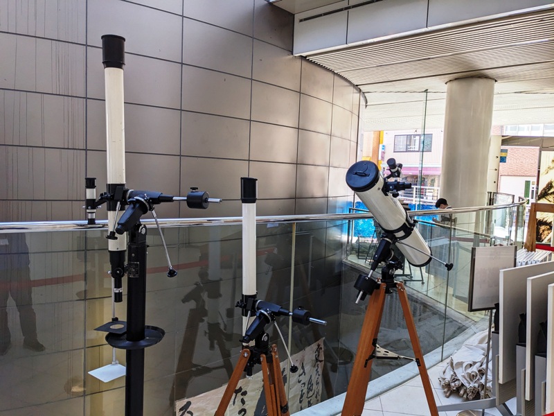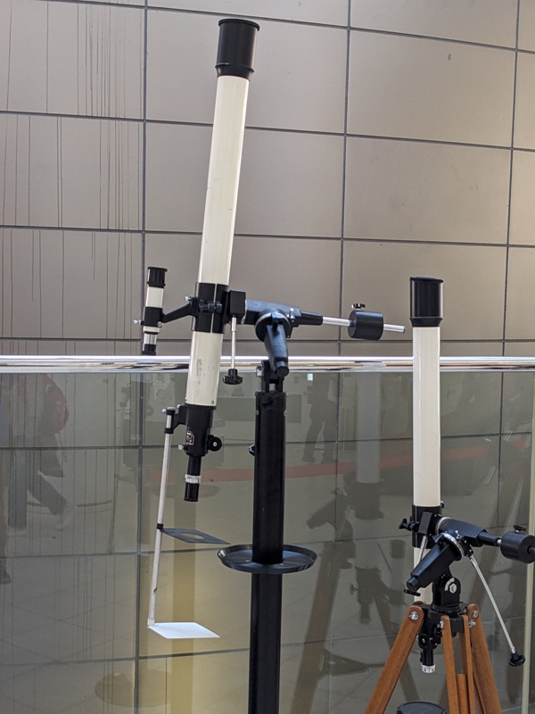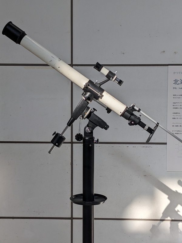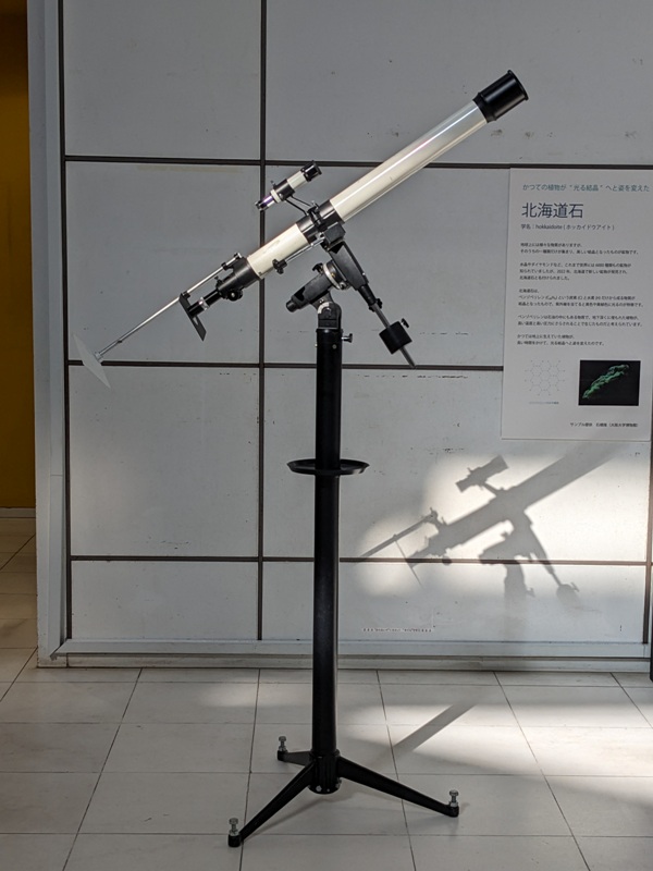 1年ほど前に他の公共施設から「もらっとくれ」と言われて、何だかんだで8台もらったのですが、観望会用には高橋FC100やMT130があり、間に合っているので、ときどき太陽黒点をお見せする以外は、このようにオブジェ状態です。