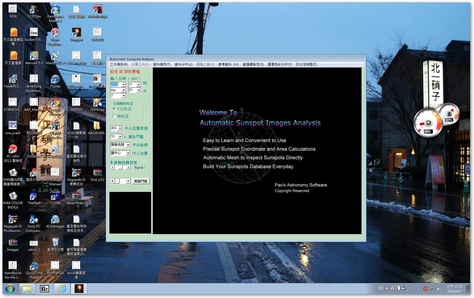 PHOTOSHOP processed images and solar latitude and longitude positioning software (as shown below)圖1