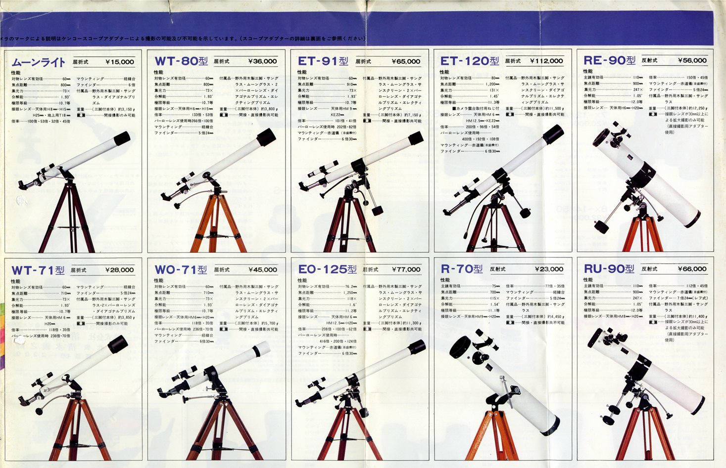 (天体望遠鏡アーカイブ 「レトロ望遠鏡資料館」のケンコーのカタログを参照のこと)